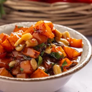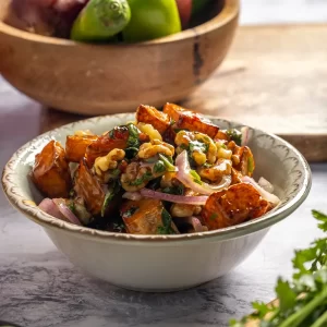 סלט בטטה קלויה עם פיצוחים קראנצ'יים, מתובל בעדינות ...