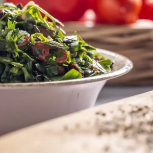 סלט רענן העשוי מבורגול, פטרוזיליה קצוצה, עגבניות, בצל ...