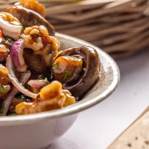 סלט פטריות מוקפצות עם צ'ילי חריף ואגוזים קראנצ'יים, ...