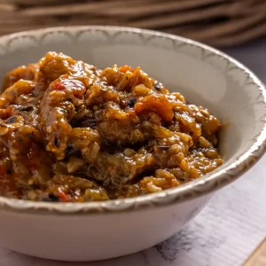מטבוחה חריפה עם עגבניות מבושלות, פלפלים חריפים ושום, ...