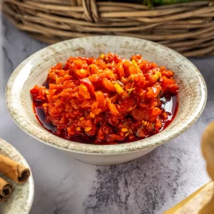 ממרח חריף עשוי מפלפלים אדומים חריפים, שום, כוסברה ...