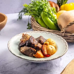 תבשיל קלאסי מבשר בקר חתוך לקוביות, מבושל באיטיות ...
