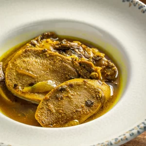 מוח בקר מבושל בעדינות בתערובת תבלינים ארומטית ורוטב ...