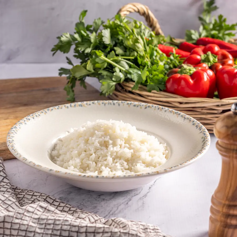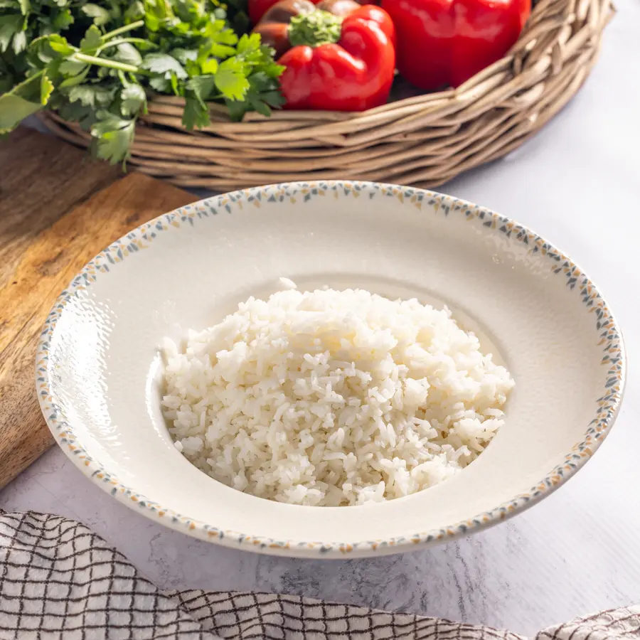 אורז מבושל בעדינות עד לרכות מושלמת, ללא תבלינים נוספים, לשמירה על הטעם הטבעי והנקי שלו. מתאים כתוספת למגוון מנות, מוכן לחימום והגשה.