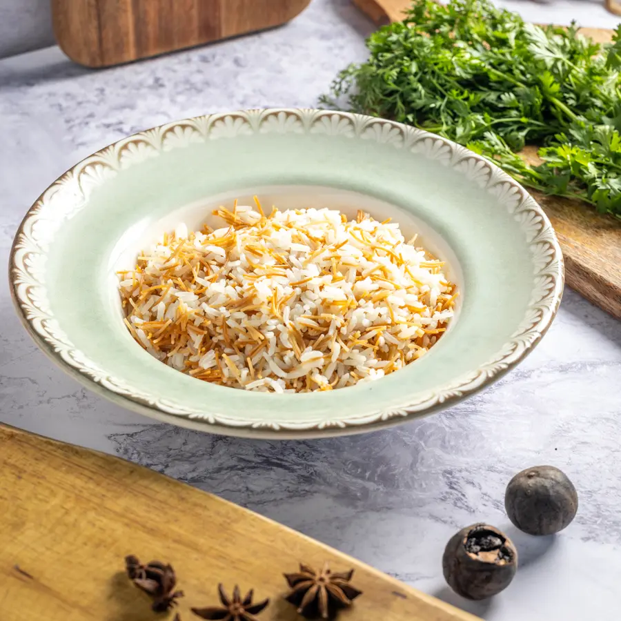 שילוב קלאסי ומפנק של אורז רך עם אטריות זהובות וקלויות. המנה מביאה איזון מושלם בין טעמים עדינים וטקסטורות מגוונות, שמתחברים יחד לחוויית אכילה מנחמת ומוכרת.
