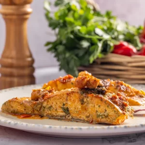דג אמנון טרי, מתובל בעשבי תיבול ארומטיים ומבושל בעדינות לשמירה על טעמו העדין. מנה קלה ורעננה.