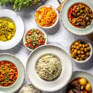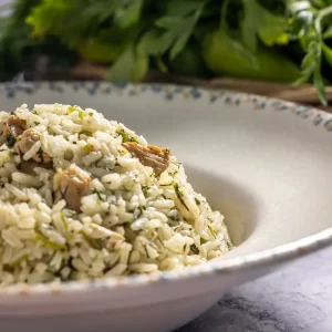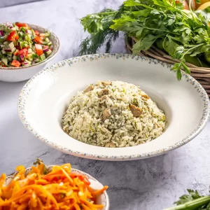 תבשיל אורז מסורתי מהמטבח הבוכרי, מבושל עם עשבי ...