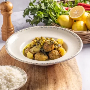 תבשיל קציצות עוף עם תפוחי אדמה ואפונה