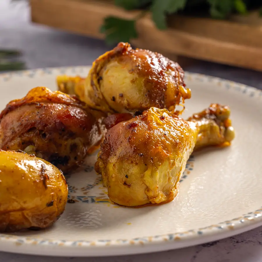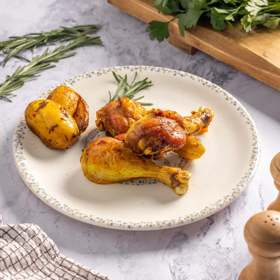 שוק עוף עסיסי , מתובלים בתערובת תבלינים מזרחית ומבושלים לאט לקבלת טעמים עמוקים ורכים. מנה עשירה בטעמים.