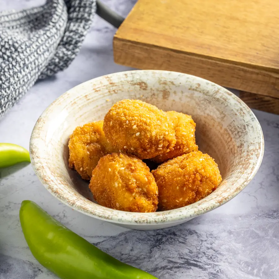 כדורים קטנים של תפוחי אדמה מעוכים, ממולאים בבשר בקר מתובל ומטוגנים עד להזהבה. חטיף פריך וטעים, מושלם כחטיף או כתוספת.