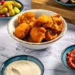 פרחי כרובית מצופים קלות ומטוגנים עד להזהבה ופריכות. מנה קלה ופריכה.