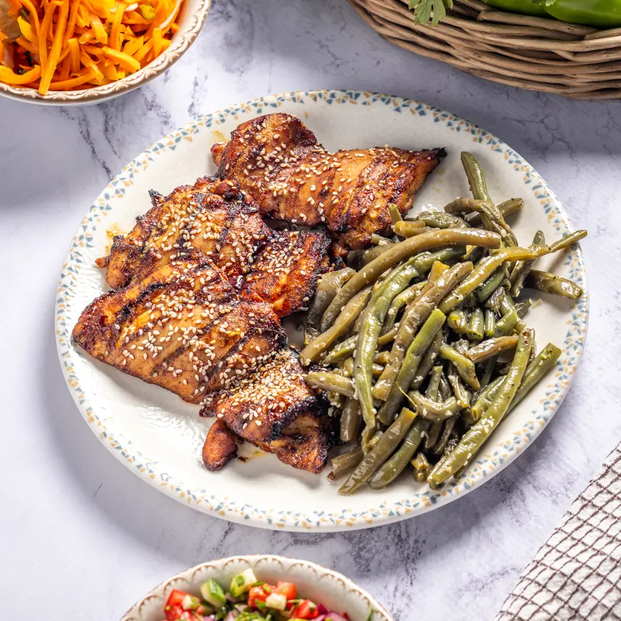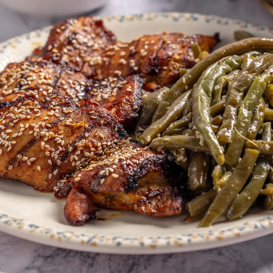 נתחי פרגית עסיסיים, מושרים ברוטב טריאקי עשיר ונצלים על הגריל עד לקבלת טעם מתקתק ומעושן.