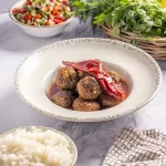 קציצות מבשר בקר טחון, מתובלות בעדינות ומבושלות ברוטב עגבניות עשיר וסמיך. מנה ביתית ומנחמת, מוכנה לחימום והגשה.